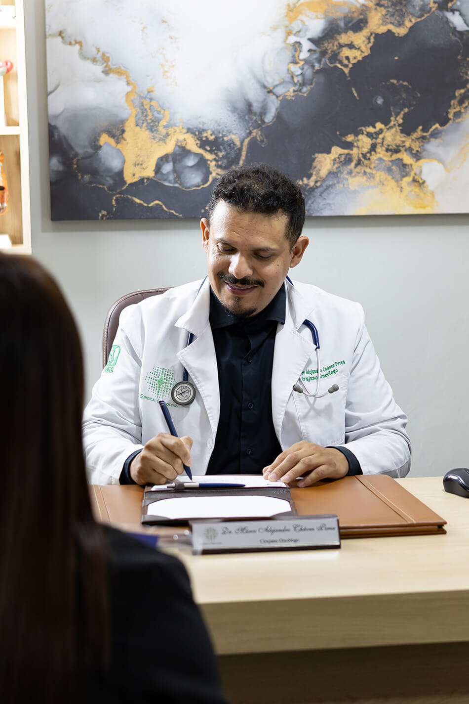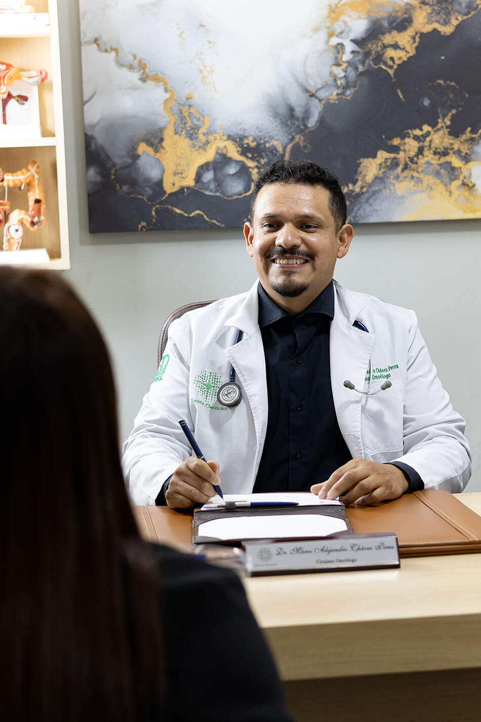 Con una sólida formación en el Centro Médico Nacional de Occidente del IMSS y la Unidad Médica de Alta Especialidad del Bajío, el Dr. Marco Alejandro Chávez Perea se ha dedicado a la detección y tratamiento oportuno del cáncer, utilizando las mejores tecnologías y tratamientos disponibles.